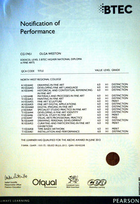 Olga Weston have finished (L3) BTEC Foundation in Art and Design,